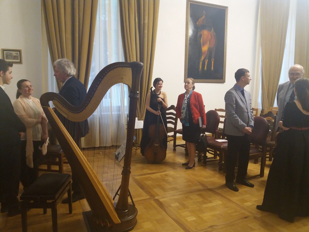 Concertul a cuprins lucrări de B. Marcello, D. Scarlatti, C. Debussy, F.M. Veracini și B. Bartók, în interpretarea artiștilor: Raluca Stratulat – vioară, Andreea Țimiraș – violoncel și Andrei Olaru- harpă.