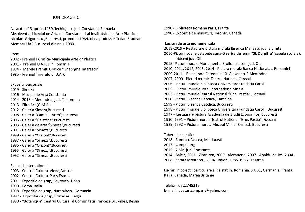 În seara zilei de marți, 27 octombrie 2020, în saloanele Jockey Club a avut loc deschiderea expoziției care a cuprins lucrări de grafică semnate de pictorul Ion Drăghici. La eveniment a fost prezent Adrian – Silvan Ionescu, istoric al artei.